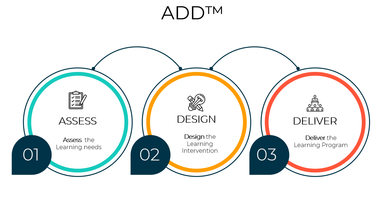 We operate through our trade-marked model of training operations called ADD, where we Assess the Learning Needs of our Clients, Design the Learning Intervention according to the needs and learning style of the learners and Deliver the Learning Program by our Experiential Learning Methodology.